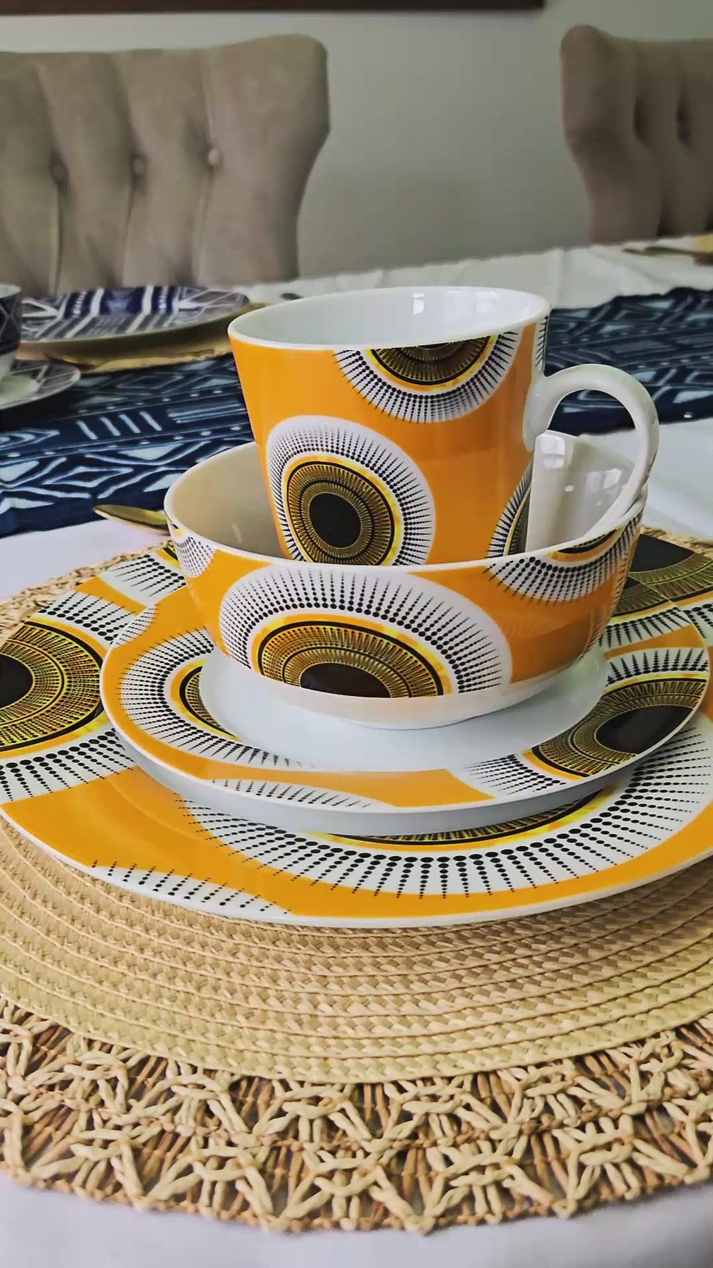 Aso Oke Designed Tableware. Inspired by West African Music and Fashion