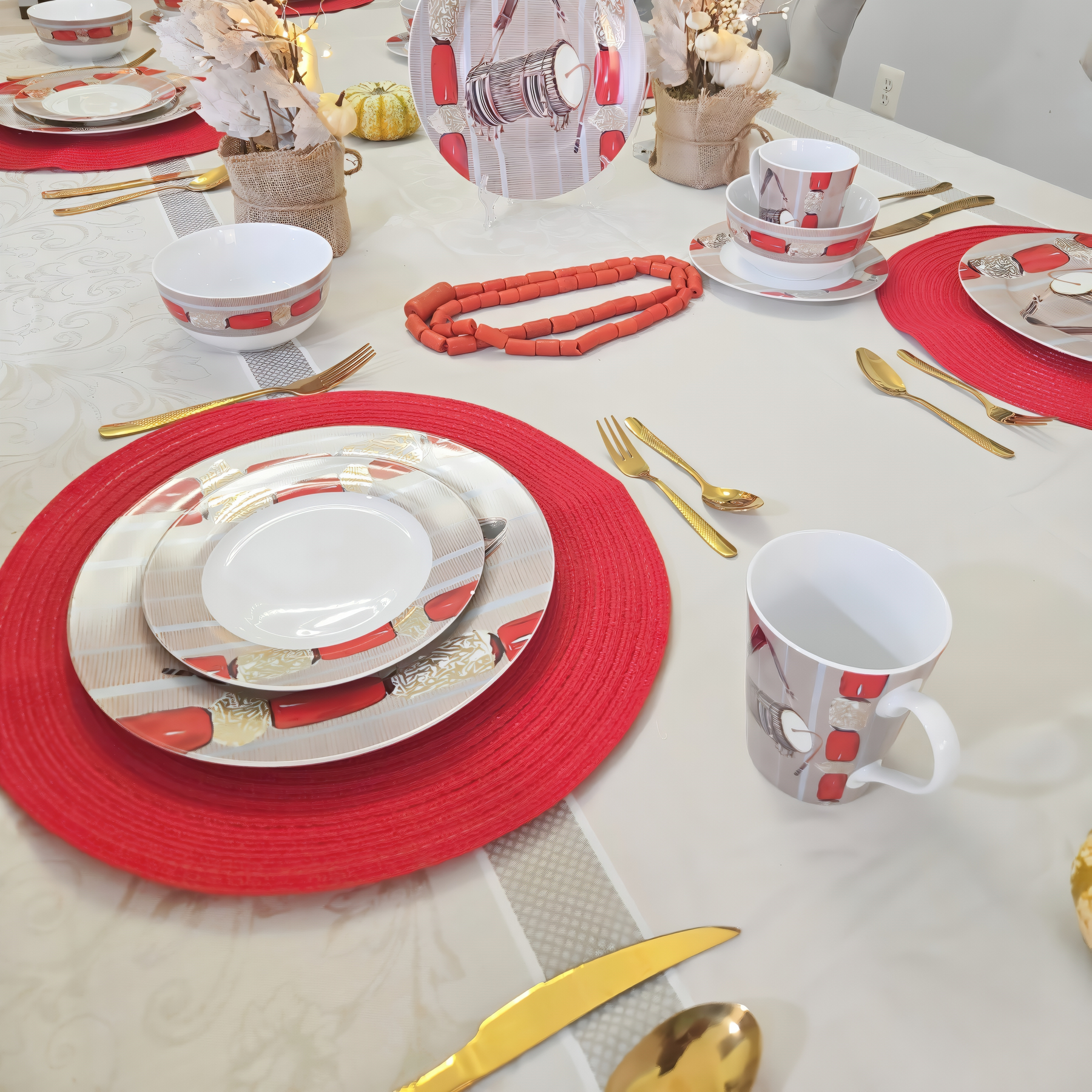 Indulge in 16pcs African Art Dinnerware like never seen before. Indulge in your greatness and transform your dining.